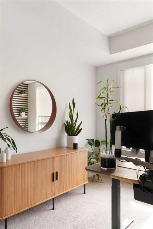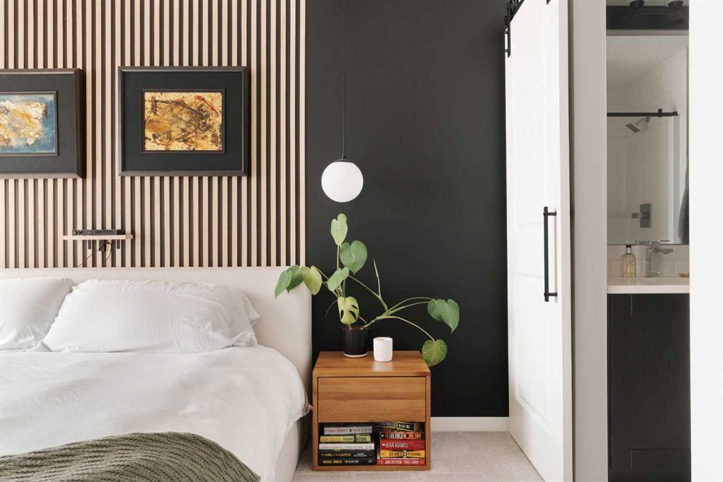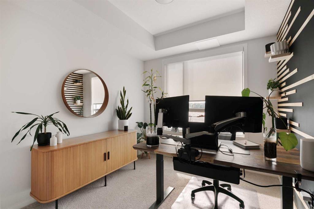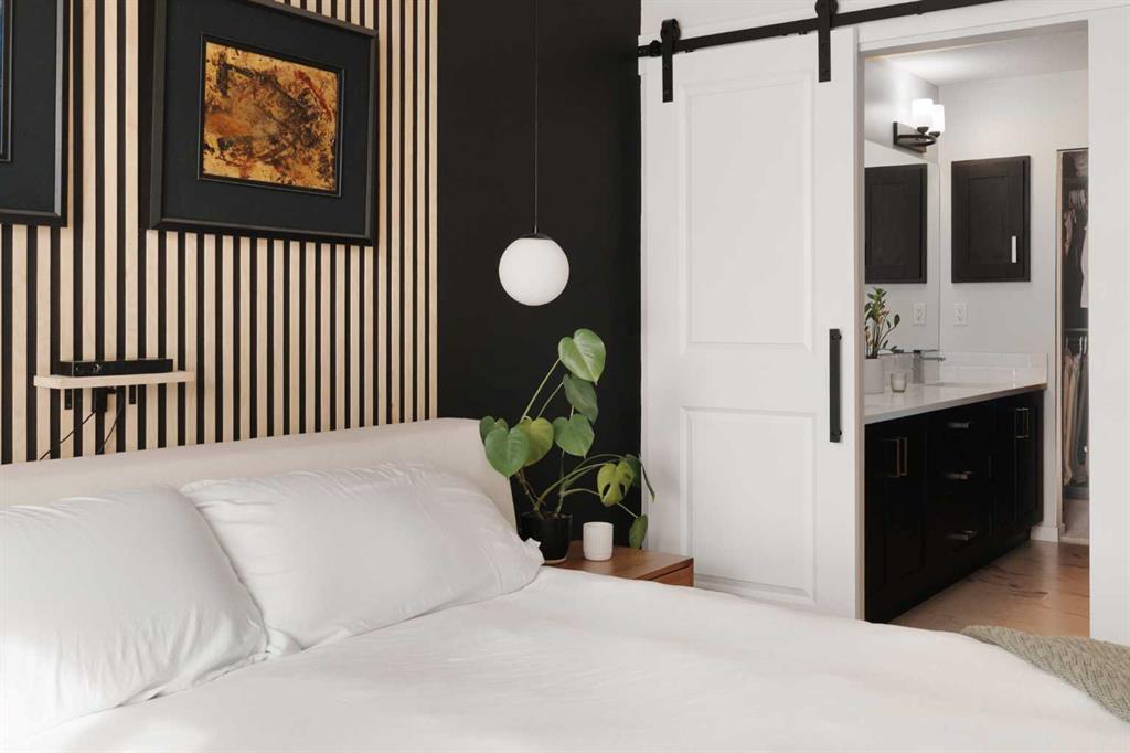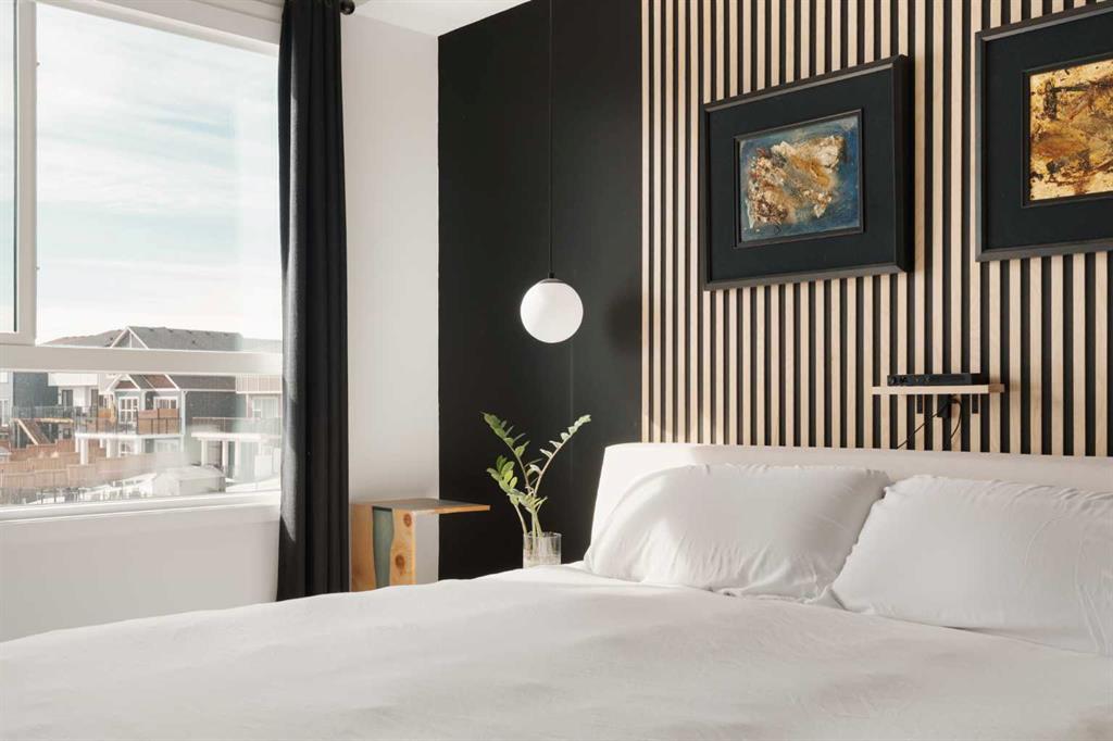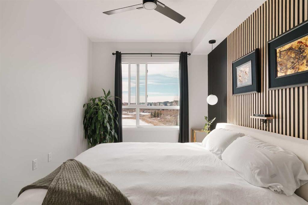 Welcome home to this stylish, meticulously upgraded 2-bedroom, 2-bathroom condo in the vibrant SE community of Cranston's Riverstone. With a thoughtfully designed living space and coveted south exposure, this unit is flooded with natural light year-round — and the serene views over the landscaped pond never get old. The open-concept main living area makes an immediate impression, anchored by a striking dark feature wall with floating shelves and seamlessly connected to a chef-inspired kitchen. The kitchen i...