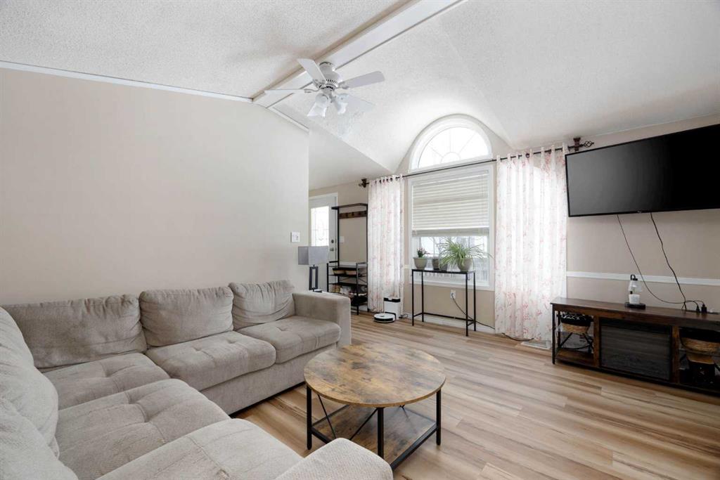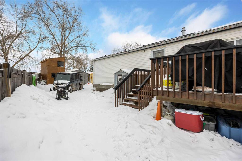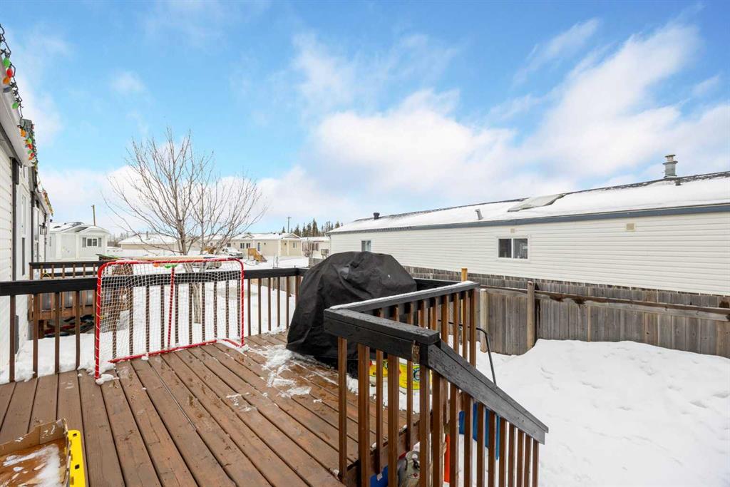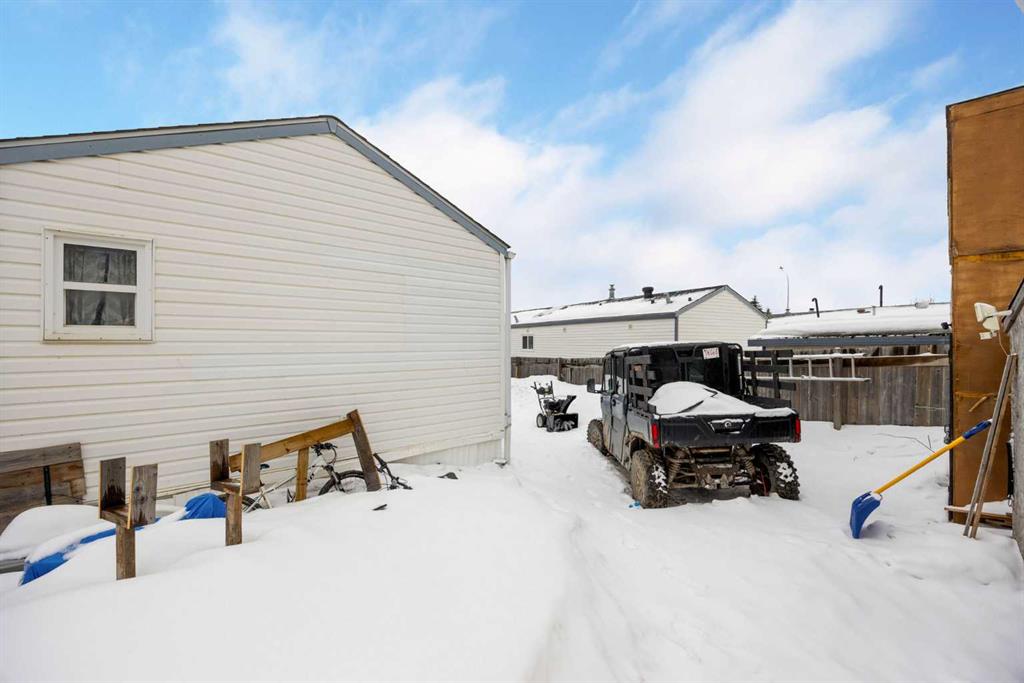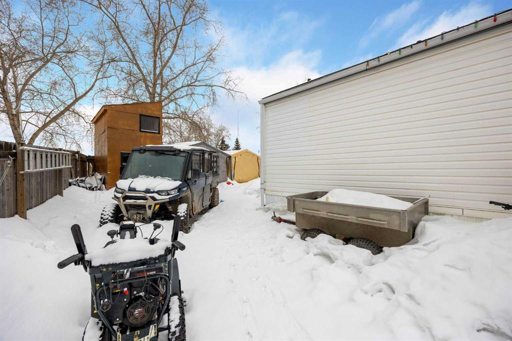 The lot is what sells this one before you even walk inside. Corner position, backing directly onto a park, with the alleyway path running along the side and the green belt a few steps across the road. Your street doesn't connect to the rest of Gregoire, so you get the quiet without the traffic. Visitor parking sits right across from the house, and the driveway fits 4 vehicles. If you've got toys, this is where they live. The side yard handles the truck, the side-by-side, the snowmobile trailer, and the boat...