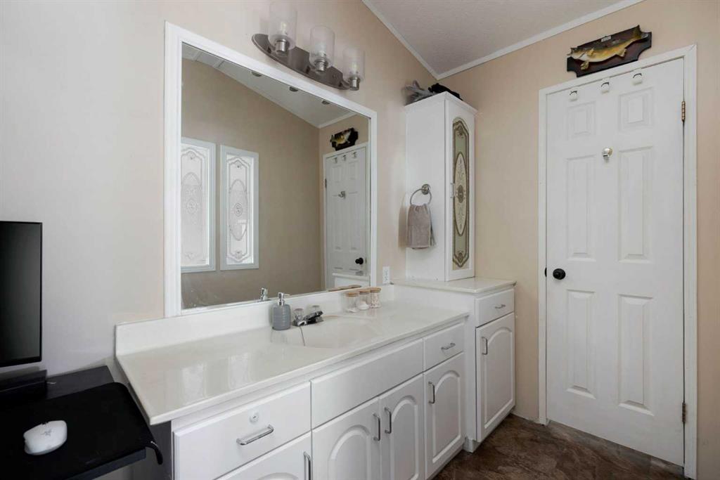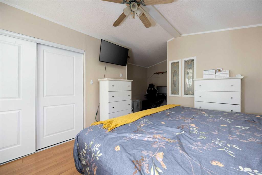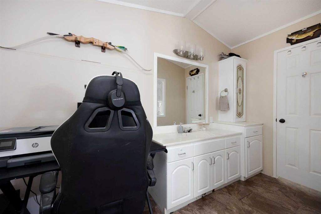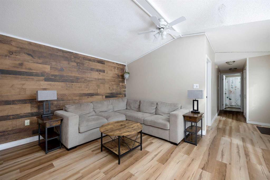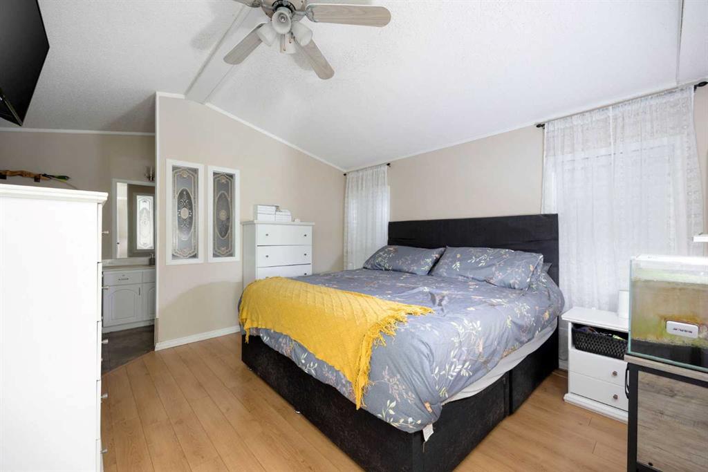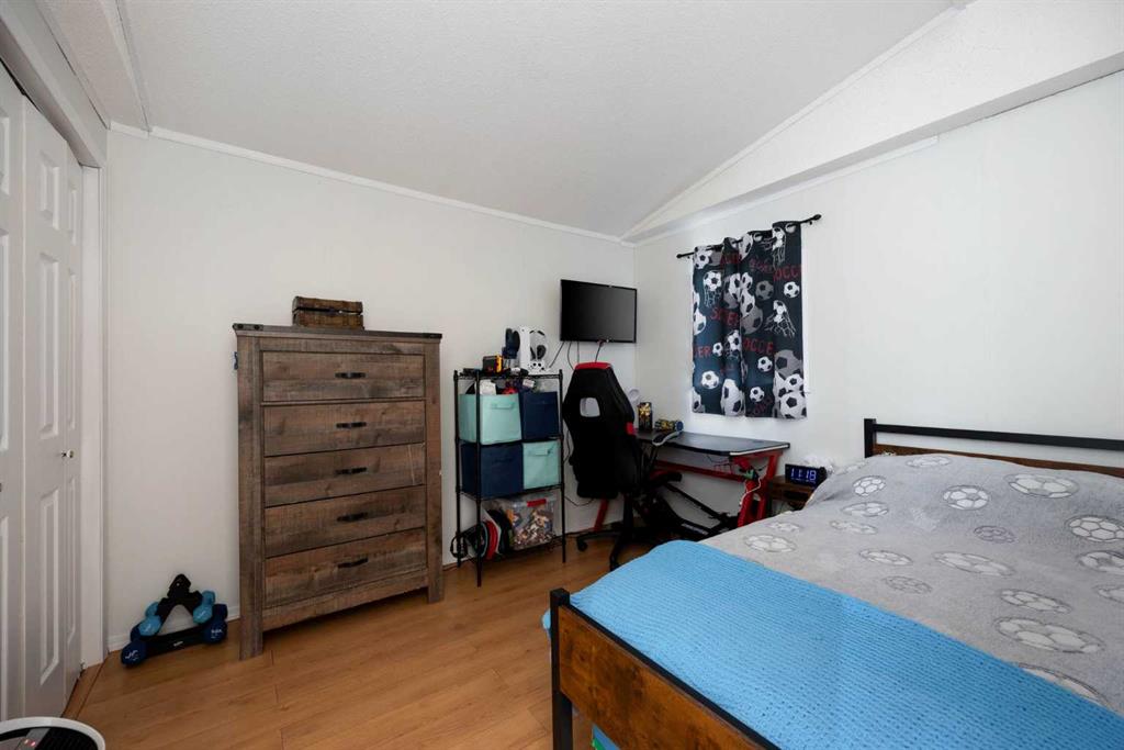 The lot is what sells this one before you even walk inside. Corner position, backing directly onto a park, with the alleyway path running along the side and the green belt a few steps across the road. Your street doesn't connect to the rest of Gregoire, so you get the quiet without the traffic. Visitor parking sits right across from the house, and the driveway fits 4 vehicles. If you've got toys, this is where they live. The side yard handles the truck, the side-by-side, the snowmobile trailer, and the boat...