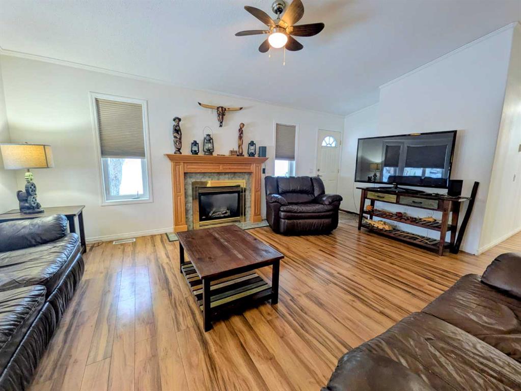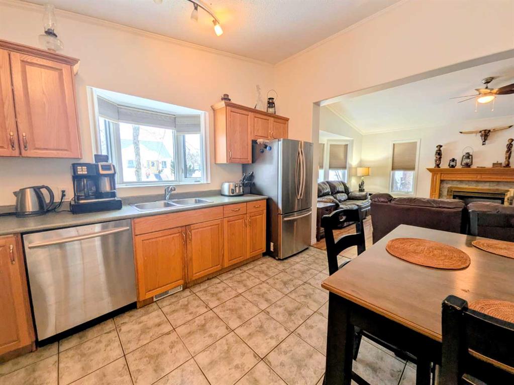 Welcome home to this beautifully maintained bungalow in the heart of Rycroft. This inviting home offers 3 bedrooms and 2 bathrooms, including a private primary suite with ensuite, providing comfort and functionality for families or downsizers alike. The open-concept living space is filled with natural light and showcases soaring ceilings, large bay windows, and a cozy gas fireplace, perfect for both everyday living and entertaining. The kitchen is thoughtfully designed with ample oak cabinetry, stainless st...